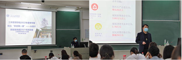 张经理结合管理统计学的课程背景及相关知识为2020级会计学2班全体本科生讲了一堂别具匠心的思政课。课上,张经理用一张张图表、一份份数据、一个个成绩从经济建设、民生保障、三农问题、生态文明、退税减税等五个角度解析了我国在2021年取得的巨大发展与成就。张经理指出,2021年我国经济高质量发展态势稳健:对外贸易额、研发支出占GDP比例均稳居世界前列,乡村振兴工作不断加深巩固,居民医疗保险、基本公共卫生服务经费等扶助标准逐年增加……张经理最后鼓励同学们,希望广大青年胸怀理想、锤炼品格,脚踏实地、艰苦奋斗,干事创业、辛勤耕耘,勇当真抓实干的奋进者、敢闯敢试的开拓者、攻坚克难的博击者、坚忍不拔的创新者,不断书写点亮青春、奉献祖国的时代华章。