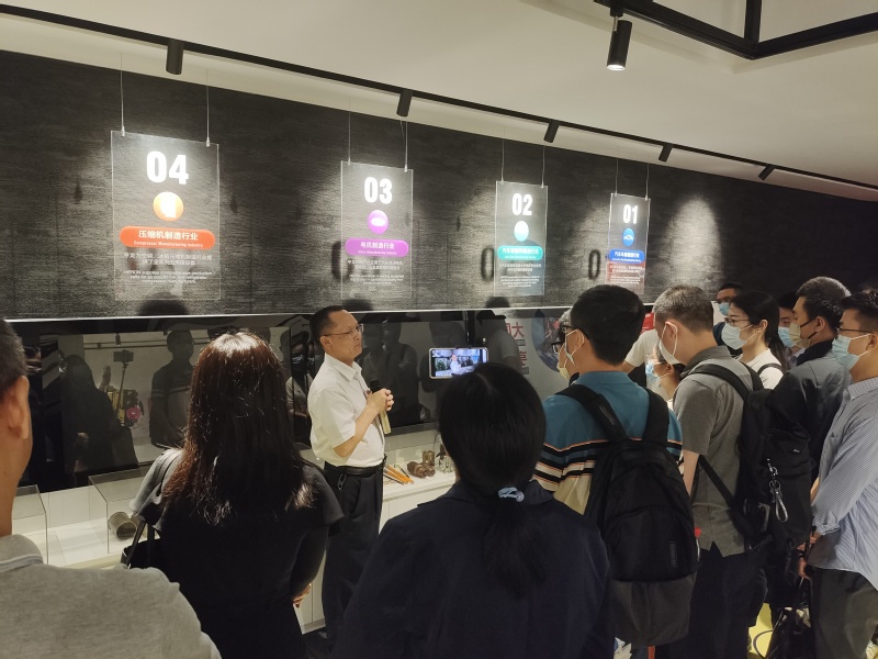 上午,师生一行人首先来到位于从化区的亨龙。公司企业创始人邹春芽董事长带领大家参观了企业文化展示长廊,通过丰富的图文展示,清晰的现场讲解,使员工了解该企业的发展史、业务范围、产品现状及核心理念。交流会上,邹春芽董事长通过切身经历详细阐述亨龙如何在面临困境的情况下转型升级,并日益成为行业领先的智能装备制造商。虽然亨龙自成立以来取得了良好的成绩,但也面临着产品品牌认知不够清晰等问题。针对以上问题带队老师组织员工就“如何打造爆款产品,完成企业市场方向的转型”提供解决方案,并分成五个小组,经过认真激烈的讨论后,各组形成了解决方案并进行陈述汇报,由企业和任课教师共同点评,解决方案得到了企业高管的认可。