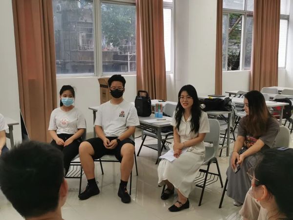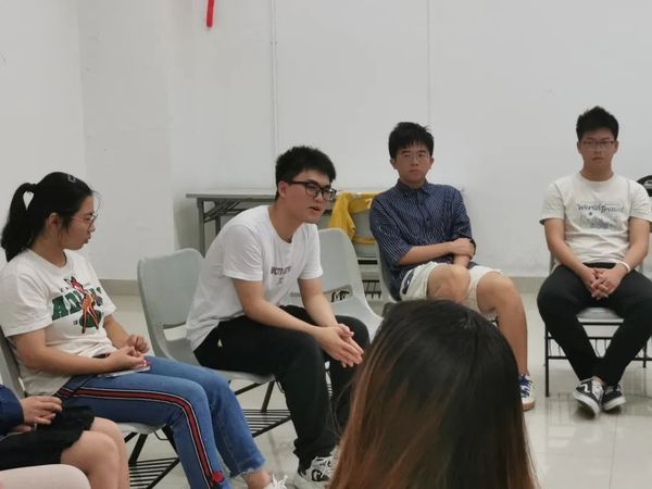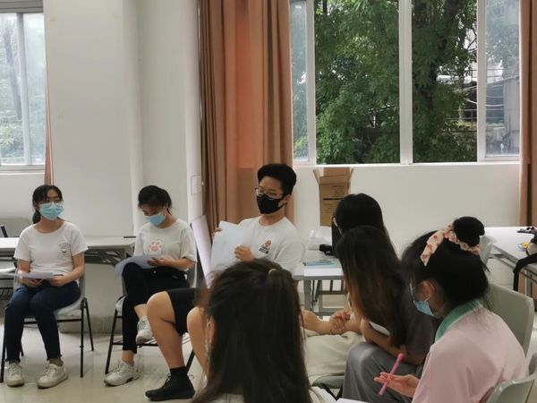 活动伊始,12名同学围成一圈坐下。同学们刚刚认识,比较拘谨,郑老师通过“动物进化论”小游戏让同学们迅速拉近距离,活跃气氛。“细胞——小鱼——大鲨鱼”的进化过程也让同学们了解到环境对心态的影响,以及如何调节和整理在环境中不断变化的心态。