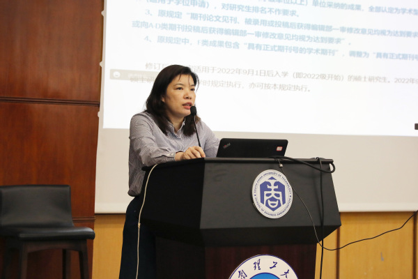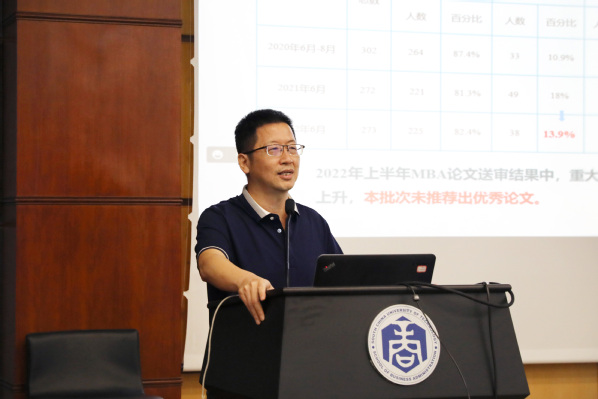 然后,李志宏副经理介绍了专业学位硕士研究生学位论文工作的相关情况与注意事项,包括近三年学位论文送审与答辩总体情况、学位论文常见问题、导师招生指标分配办法、论文工作最新政策要求等内容。李经理指出,希望导师们重视专业学位硕士学位论文指导工作,严格把关,确保学位论文质量。