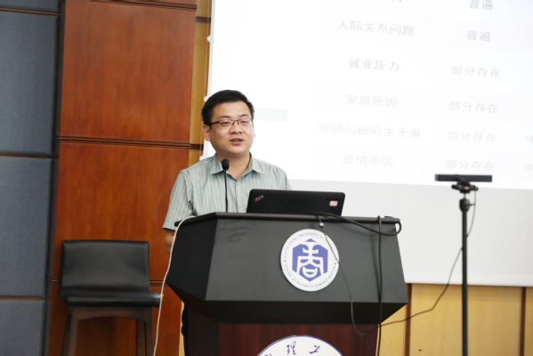会议在这个环节还邀请了广州中医药大学心理学专家宋斌老师作了主题为《研究生心理问题的特点及应对》的报告。宋斌博士从研究生心理特点的分析、研究生心理危机问题的预防、研究生导师对问题员工的应对与处理等方面进行详细讲解,建议导师们积极关注员工心理状态,及早发现员工心理异常迹象,接纳员工的情绪,帮助员工通过专业咨询、家长支持等方式处理好心理危机。