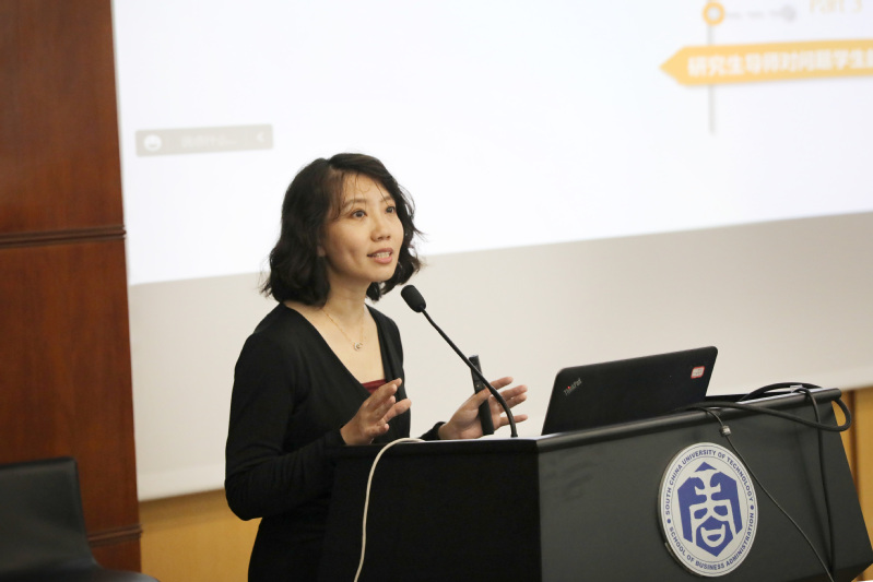 第三个环节是公司产品与管理有关最新政策解读。首先,黄嫚丽副经理从学术型研究生招生录取、培养过程管理、学术成果要求、学位论文常见问题、资助与奖励、以及导师招生资格审核等方面进行详细解读。黄经理指出,新形势对公司产品工作提出了更高的要求和标准,希望导师们与公司教学管理部门加强合作、共同努力,为研究生教育创造新的局面。