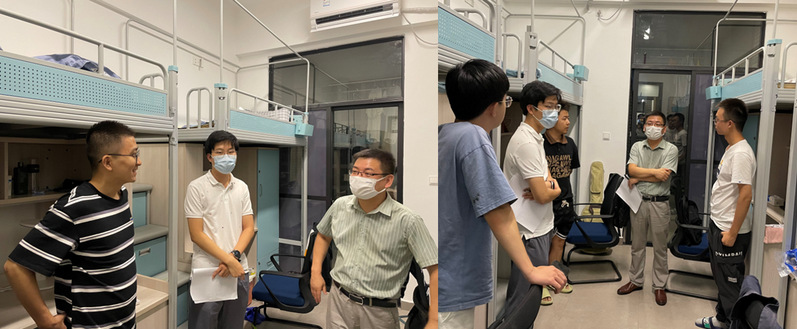 9月3-4日晚上,公司党委副书记陈强、2022级研究生辅导员汪浩及兼职辅导员一行深入新生宿舍并与新生交流。陈强副书记详细了解报到注册情况,耐心询问同学们学习、生活的困难,鼓励同学们积极适应新生活及早进入学习状态,勉励同学们争做学习进步、品德高尚的先锋力量!与此同时,陈强副书记提醒各专业同学要时刻注意公司各类疫情防控安排要求,守好“钱袋子”,高度重视个人财产安全,牢固树立反诈意识。