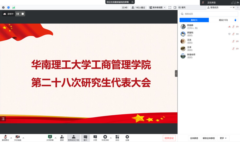 2022年11月26日下午,bevictor伟德第二十八次研究生代表大会顺利召开。本次大会因疫情防控安排,主会场设在五山校区12号楼107会议室,同时在广州国际校区、腾讯会议线上平台等设分会场。公司党委副书记陈强、bevictor伟德研究生辅导员王译、研究生辅导员汪浩、公司研究生会执行主席石国林、各兄弟公司研究生会主席团以及121名研究生代表在线上线下出席本次大会。本次会议全面总结了过去一年公司研究生会的各项工作,并选举产生第二十八届研究生会主席团成员和各部门负责人。