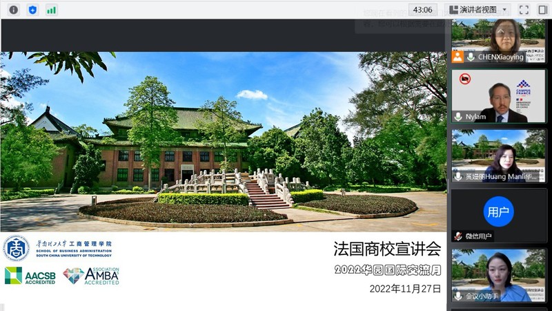 为让同学们对法国的商科教育有更深入的了解认识,助力开启留学追梦之旅,2022华园国际交流月系列活动之法国商校宣讲会于11月27日线上举行。该场活动由伟德源自英国1946国际交流与合作处主办,bevictor伟德承办。公司黄嫚丽副经理为宣讲会开场致辞,法国高等教育署广州中心负责人倪蓝天先生对法国高等教育体系进行了讲解说明,里昂商公司、IESEG管理公司和南特高等商公司的代表分别介绍了各自公司的情况与海外学习项目。公司国际合作与交流处相关负责老师参加了会议。