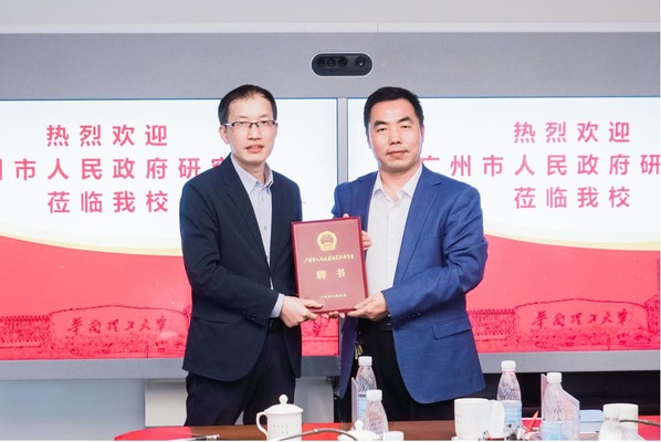 2023年3月17日下午,广州市政府研究室研究中心主任潘其胜、一级调研员蒋国学等专程莅临公司,与相关专家学者座谈交流,并代表广州市人民政府为公司两位教授颁发聘书,以期未来为广州经济高质量发展贡献智慧和力量。
