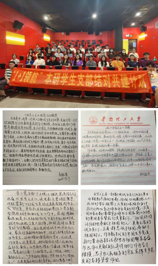 执大国佩剑,守苍穹之下国泰民安;卫蓝天界碑,护天空之底万家灯火。本科生第二党支部携手2017级硕士第一党支部开展了《长空之王》观影学习活动。《长空之王》是一部热血且励志的影片,影片聚焦新时代中国军事变革与航空武器装备发展,揭秘了最新型战机诞生的幕后故事。影片也充分展现了中国军人的热血军魂、钢铁意志和炽热卫国之心。党员们深受触动,在之后的影片观后感中一致表示要时刻牢记共产党员的初心与使命,不断提高自身素质和本领,奋发有为,用实际行动践行新时代共产党员的初心与使命,为实现中华民族伟大复兴努力奋斗!