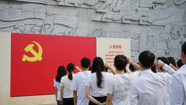 凝聚奋进力量,谱写崭新人生篇章。在鲜红的党旗前,全体毕业生党员整装肃立,重温入党誓词。“我志愿加入中国共产党,拥护党的纲领,遵守党的章程,履行党员义务,执行党的决定,严守党的纪律,保守党的秘密,对党忠诚,积极工作,为共产主义奋斗终身,随时准备为党和人民牺牲一切,永不叛党。”全体毕业生党员重温入党誓词,强化入党初心,凝聚奋斗前进的磅礴力量。