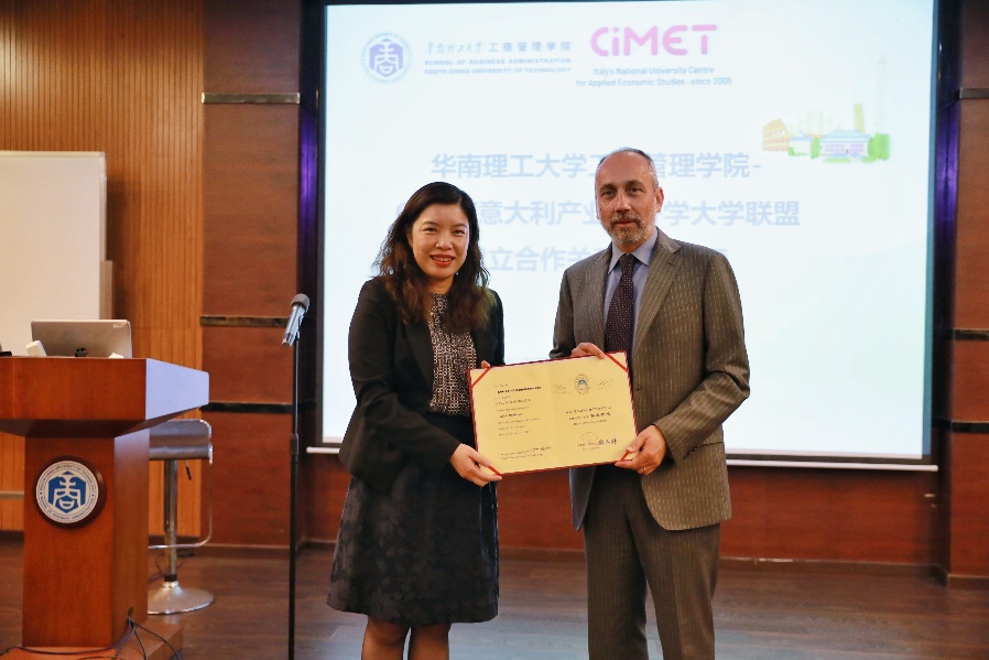 黄嫚丽为迪·托马索教授颁发客座教授聘任证书