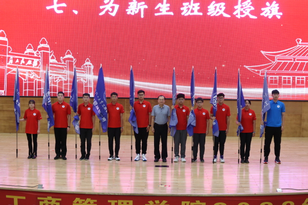 为增强新生班级凝聚力,邹浩为新生班级一一授旗。接过班旗,就是接过了使命与责任,接过了重托与担当。为同学们授班旗,希望同学们凝聚班旗下,心怀“国之大者”,锤炼本领,争做强国先锋,在实现中华民族伟大复兴的时代洪流中踔厉奋发、勇毅前进。