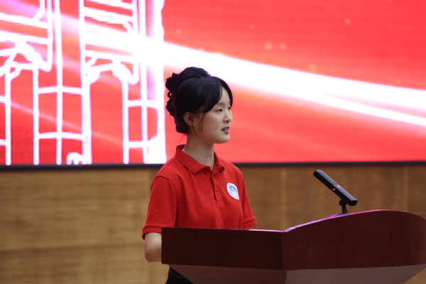 姜卓文作为本科生新生代表分享了对于老员工活的思考和规划。“愿我们都像五月的花海,像初升的太阳,如百年前一代代甲工青年一样,永葆朝气,不懈奋斗”,希望在场的新生们共勉,早日成为具有创新精神和实践能力的商学人才。