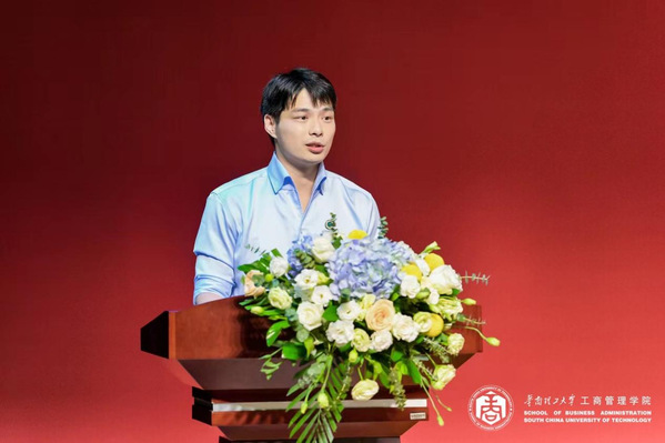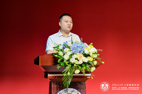 公司管理学系副教授张麟作为教师代表发言,他风趣幽默地分享了对同学们学习生涯的期望。他鼓励大家保持青春活力,保持心态年轻、身体年轻;保持务实创新精神,继续传承华工务实的学风作风;保持对社会问题的关注,努力思考如何运用商业手段推动社会发展,勇于承担社会责任。