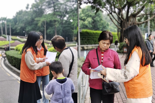 支部党员向市民宣传环保知识以及进行问卷调研