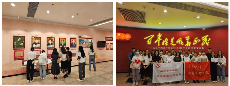 “百年恰是风华正茂”党史档案展以庆祝中国共产党成立100周年为主题,向研究生党员展出了九部分内容,涵盖了500余件珍贵文献、照片、音视频及实物档案,展示了中国共产党发展历史上的重大事件、重大会议、重要任务,展现了中国共产党自建党以来走过的光辉历程和取得的伟大成就。党员们在参展过程中认真聆听讲解,仔细观看,不时驻足互相交流,再次深切重温党的百年历史,深刻体悟党的初心使命,自觉赓续党的红色血脉。党史档案展激发了支部全体党员奋发努力、砥砺前行的奋进力量,坚定了大家听党话、跟党走的信心和决心。