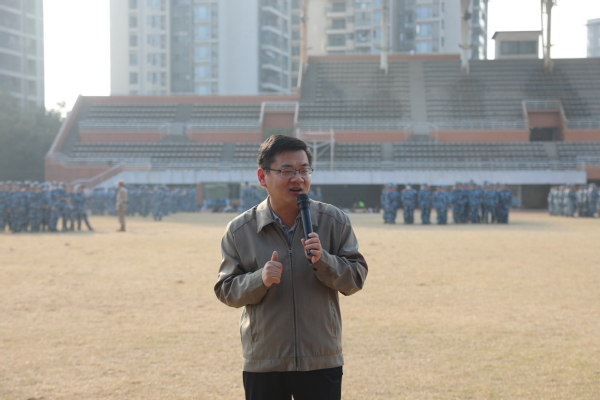 同行的领导老师们询问了同学们近期训练状态,叮嘱同学们科学训练,结束一天训练后注意休息,注意近期流感频发,保证本次军训的高质量、高效率、高成效。