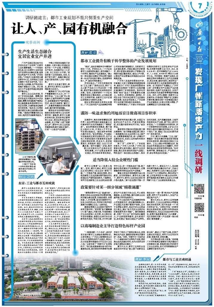 都市工业企业的实践,印证了罗明如的观察。德擎光学技术总监白天翔在采访中多次强调,德擎光学选择落户海珠区很大程度就是考虑到城市中心的区位优势,交通和物流运输都有天然优势。“很多员工也特别喜欢园区内珠江后航道的优美环境,一些研发同事喜欢到江边走走,很多技术灵感就此诞生。”