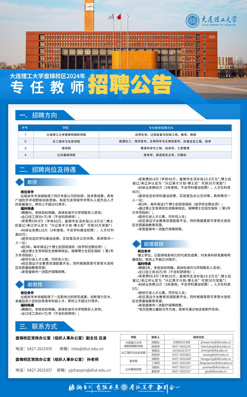 【就业信息】大连理工大学盘锦校区2024年专任教师招聘宣讲会