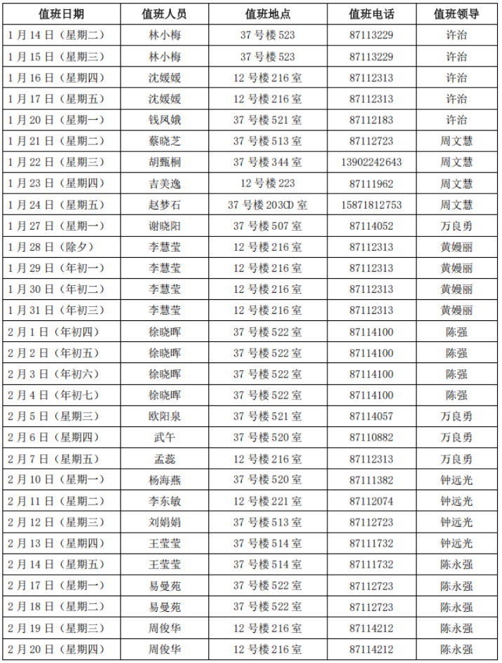 1.值班时间:上午8:30—11:30,下午15:00—17:00。