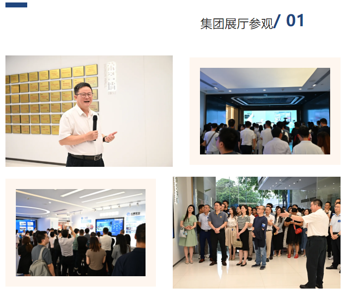 首先,集团副总经理庞铁亲自带领同学及员工们参观了集团的展厅,并进行了详细讲解。通过参观,大家深入了解集团的历史沿革与成就。集团的展厅中陈列了丰富的图表、照片和实物,生动地呈现了集团从成立初期到现在的发展历程。墙上时间线的设计使同学们能够清晰地看到该集团是如何从一个小规模的创业团队发展成为今天在数字科技领域具有重要影响力的企业。此外,成就展板上还列出了集团在技术研发、市场拓展和服务创新方面的里程碑事件,以及获得的众多奖项和认证。在了解完广州数字科技集团的发展历程和成就之后,大家对集团如何能在激烈的市场竞争中保持领先地位产生了浓厚兴趣。