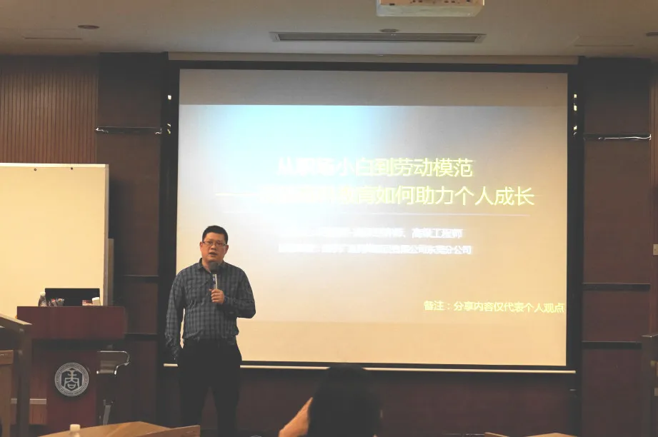 2023年11月7日(周二)晚上,白昼渐短,夜幕早早降临,参加讲座的员工们陆续来到五山校区12号楼105室,期待着一场精彩的主题分享与交流。本期员工讲座邀请到bevictor伟德EMBA&MBA东莞员工会顾问何振亮员工,带来“从职场小白到省五一劳动奖章获得者——浅谈商科教育如何助力个人成长”的主题分享。他用自己在职场几十年的亲身经历和丰富的数据,给现场的20多名同学们分享了做人、做事等方面的宝贵经验。