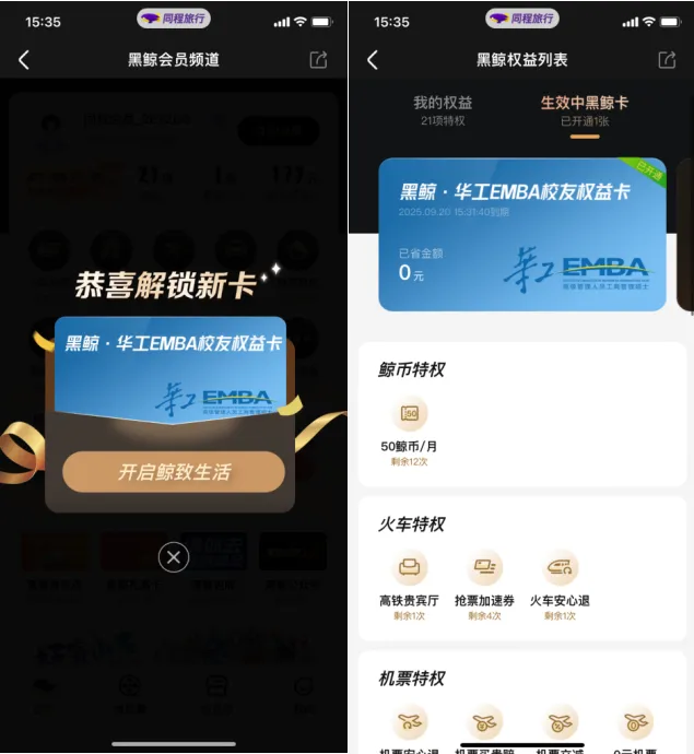 为了更好地服务于广大员工,提升员工的归属感和满意度,同程旅行特为伟德源自英国1946EMBA员工送上福利,推出同程旅行黑鲸·华工EMBA员工权益卡,旨在为华工EMBA员工提供更加丰富、便捷和优惠的旅行服务。