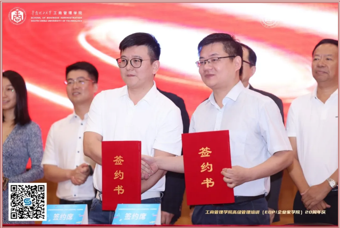 在高级管理培训20年的办学历程里,有一个特别的班级——“2020年广州市年轻一代民营企业家健康成长高级研修班”(也称“厚浪班”),他们毕业后一直热心于公司及公司教育事业。在如此一个值得纪念的日子里,“厚浪班”员工决定向公司捐赠20万元成立“厚浪教育基金”。随后,现场举行了“厚浪教育基金”捐赠签约仪式。