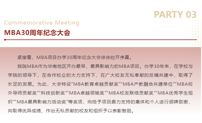 杰创智能科技股份有限公司董事长、公司2000级MBA孙超员工作为MBA30周年纪念大会员工代表发言,他向公司表达了感谢,寄语员工们发展越来越好、母校越办越好。