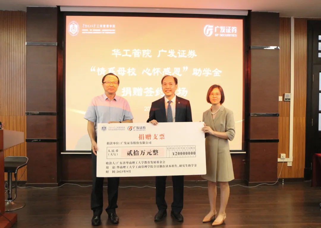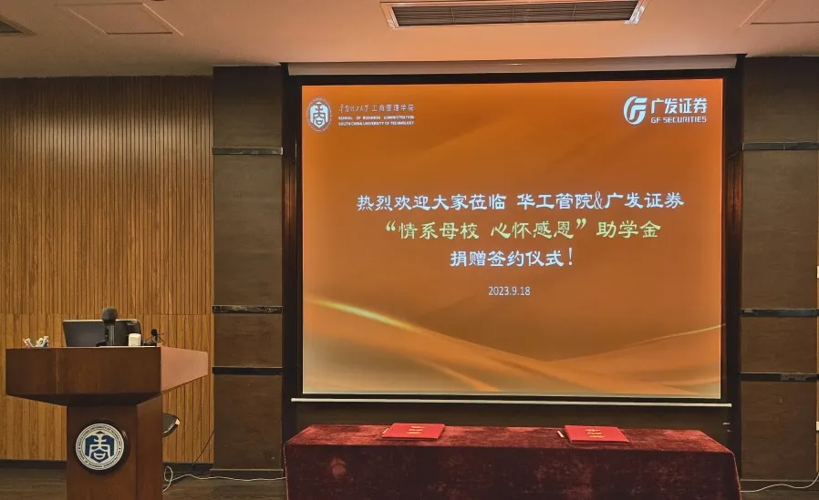 时为夏秋之交,在这个充满希望与收获的季节,阳光无比明媚。我们终于盼来了久违的广发证券“情系母校 心怀感恩”助学金捐赠签约仪式暨员工讲座活动,于2023年9月18日在12号楼105顺利举行,现场师生、员工共同见证了这个盛大的时刻。