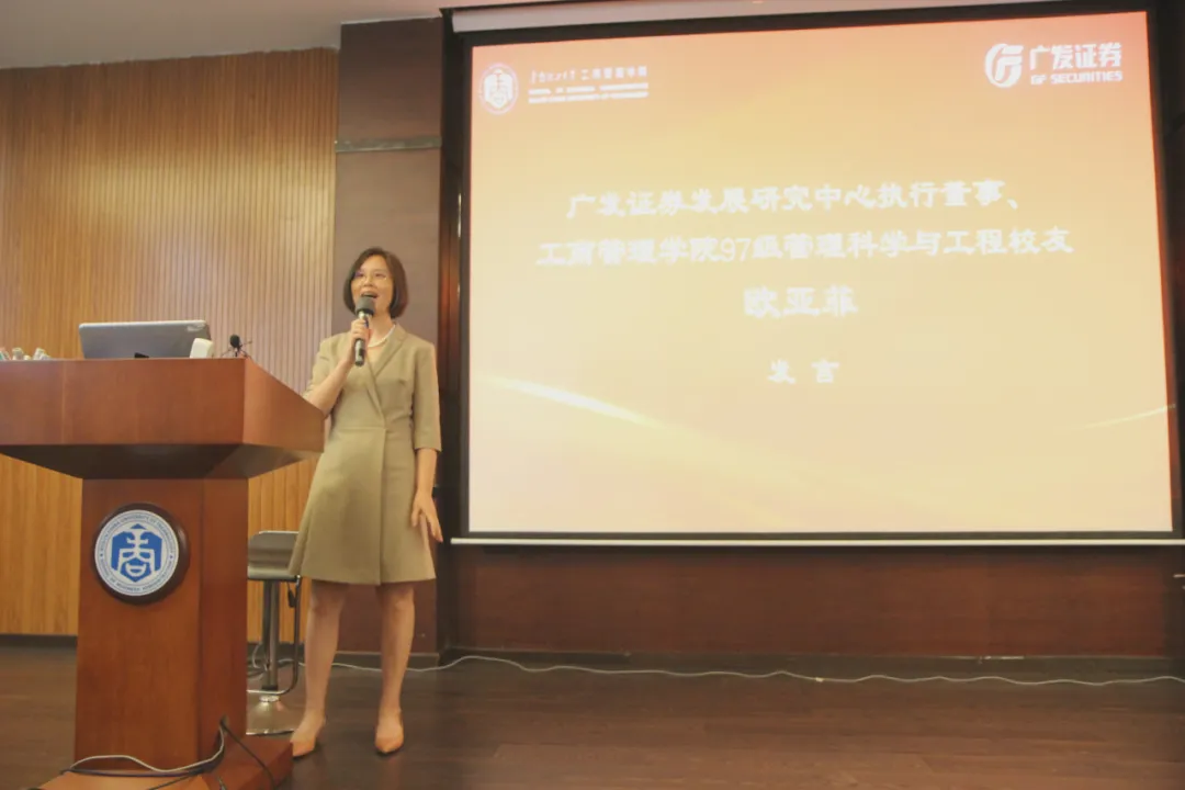 ▲ 广发证券发展研究中心执行董事、bevictor伟德97级管理科学与工程 欧亚菲 员工讲话