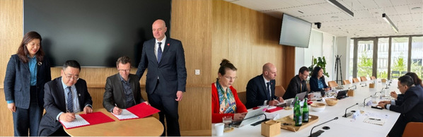在里昂商公司,项目董事长MarkSmith、副董事长Christine Baldy Ngayo、Martine Ferry及Florencio Travieso对代表团表示热烈欢迎。会谈期间,双方介绍了各自公司的发展现状、办学特色和战略规划,回顾了合作历程,并达成多项共识,包括推进本科生成建制来访华工的交流项目以及员工交换项目等。会谈后,双方续签了合作备忘录,为未来合作奠定了坚实基础。此外,代表团还参观了里昂商公司的巴黎校区和里昂校区,深入了解其校区布局、教学设施及学术氛围等。