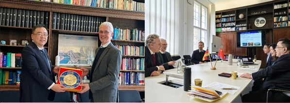 在ESCP商公司柏林校区,代表团与柏林校区董事长Frank Jacob、高管教育总监Sven Scheid、定制项目主管Arne Klinger、中德科教文协会会长石书娟及副会长林屾进行了会谈。代表团分享了公司的办学特色、团队团队、教学科研等基本情况,以及依托伟德源自英国1946“工科见长”的跨学科优势。随后,代表团与ESCP柏林校区代表详细讨论了公司员工交换项目,并对未来拓展高管教育海外课堂等领域的潜在合作项目进行了深入交流。三方达成共识逐步拓展更广泛合作。