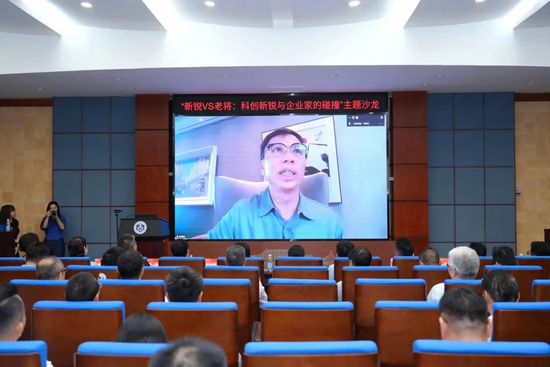 随着LED大屏的首次点亮,学术报告厅也化身为思想交锋的舞台。在揭幕仪式后,“新锐VS老将:科创新秀与企业家的碰撞”主题沙龙正式开启,工管EDP同学会秘书长周胜蓝手持话筒走上舞台,身后屏幕流动着科技蓝光,这块崭新的大屏成为传递创新火种的“第一见证者”。