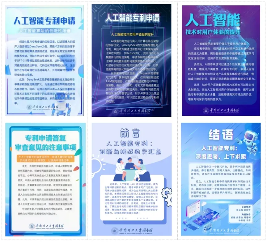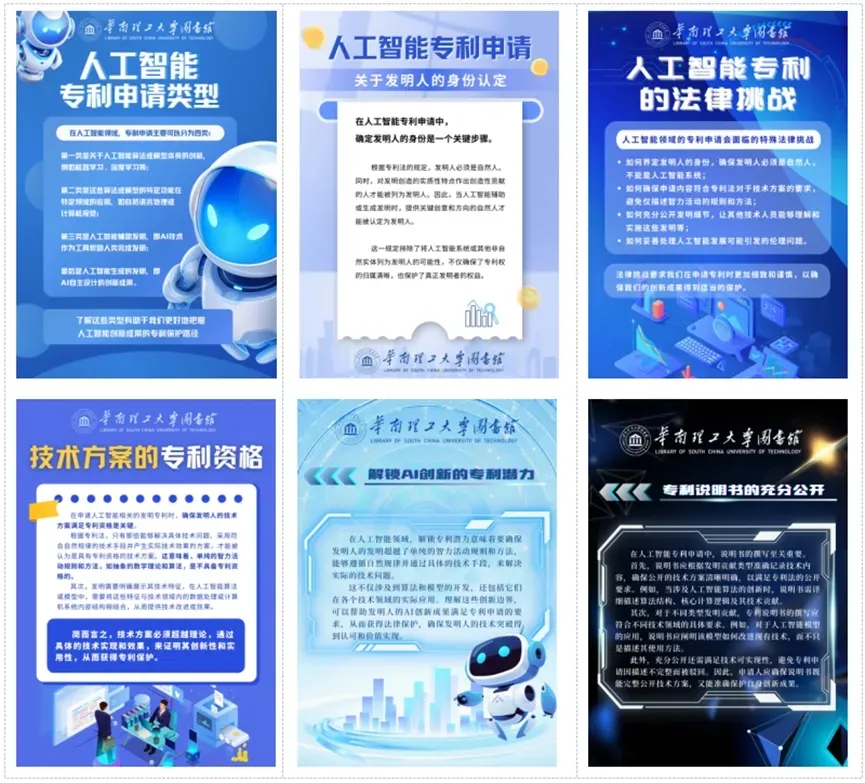 人工智能对于各行业创新发展都有着重要作用。随着Deepseek火爆全网,人工智能的热度进一步提升,有关人工智能的专利申请也在快速增长。2024年12月31日,国家知识产权局发布了《人工智能相关发明专利申请指引(试行)》,该《指引》回应了创新主体普遍关切的热点法律问题,对于创新主体有重要的参考作用。本活动围绕《指引》中的核心内容,制作成宣传海报,在2025年度知识产权宣传周期间放置于图书馆内(多校区设展),供大家参阅。