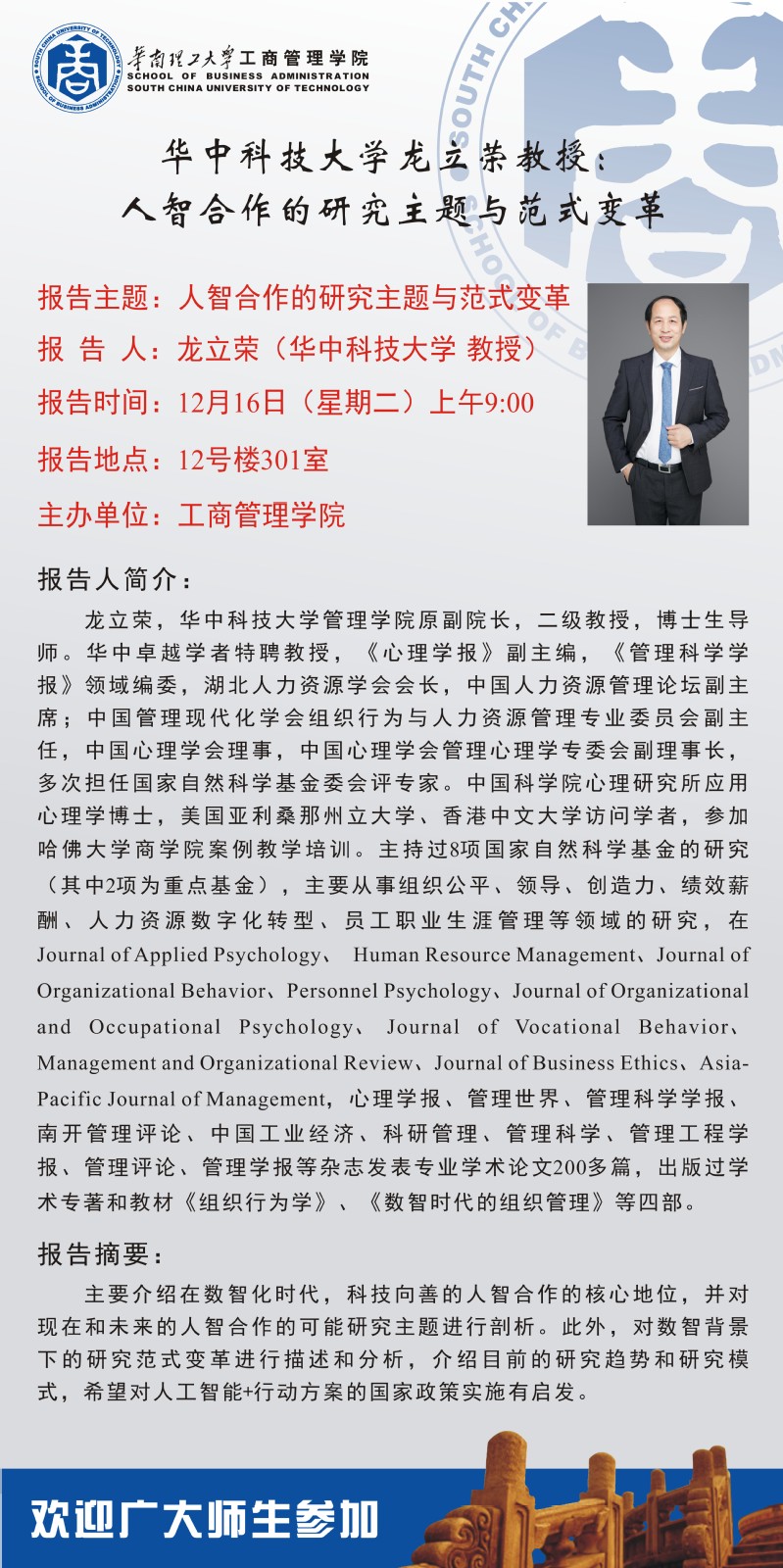 【学术交流报告】华中科技大学龙立荣教授:人智合作的研究主题与范式变革