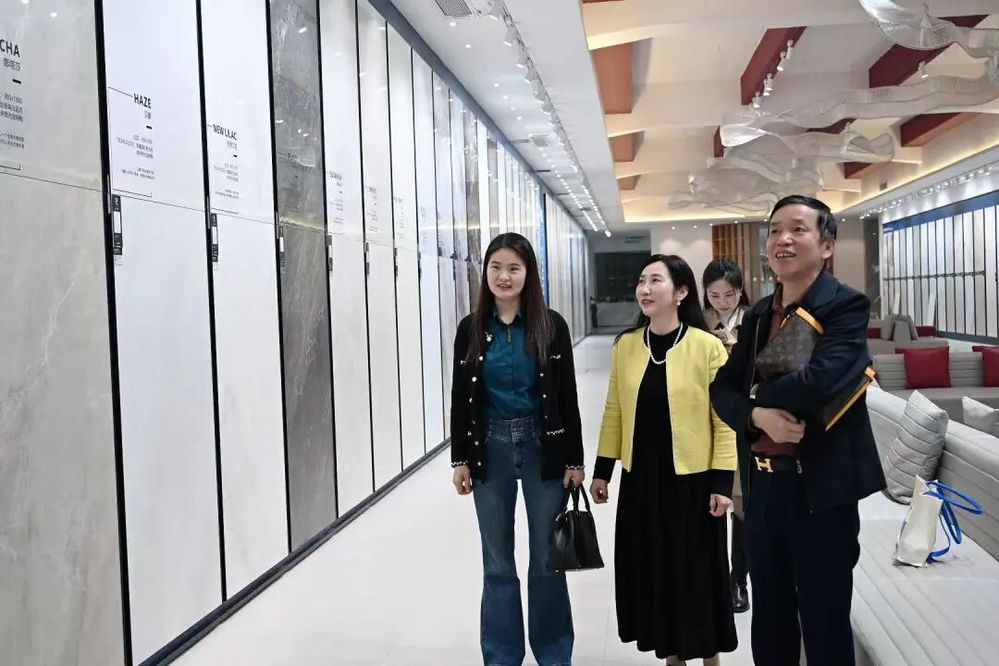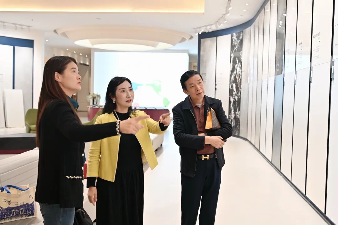 漫步展厅,从纹理天然的石材复刻砖到质感细腻的艺术瓷砖,每一款产品都兼具实用与美学价值,领导们纷纷对产品品质与创意赞不绝口,更笑言“看到这么优质的瓷砖,都想重新装修家里了”,现场氛围轻松而热烈!