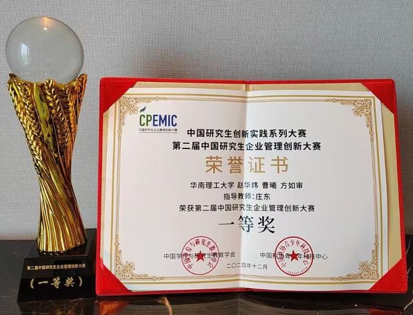 全国一等奖!公司“华工之光队”在第二届中国研究生企业管理创新大赛总决赛企业决策赛道斩获佳绩