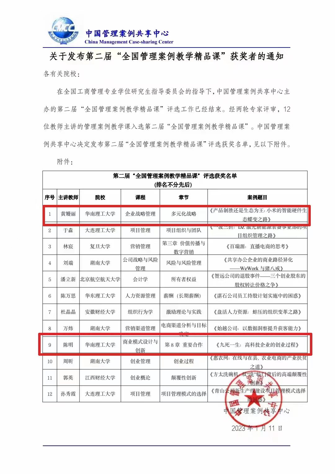 公司两门课程入选第二届“全国管理案例教学精品课”