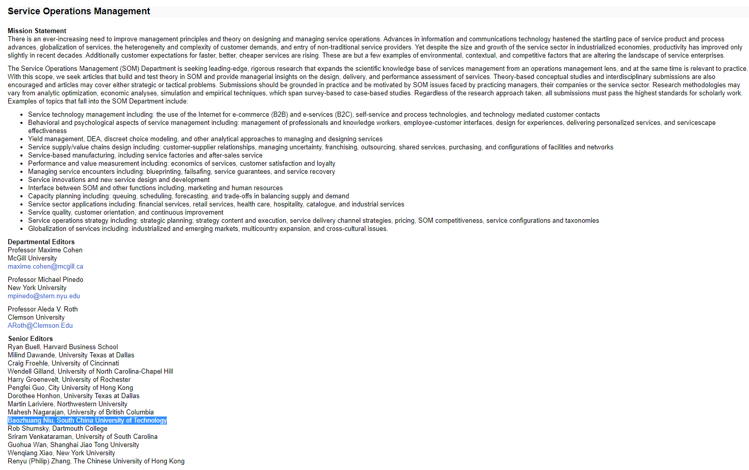 公司牛保庄教授受邀担任UTD24期刊《Production and Operations Management》高级副主编