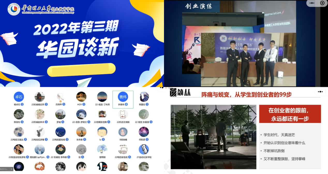 2022年11月27日,由创业教育公司举办的2022年第三期华园谈新顺利举行。公司优秀员工简从科技公司创始人禤俊鹏、以及2019级自动化科学与工程公司在读博士、极臻科技公司...