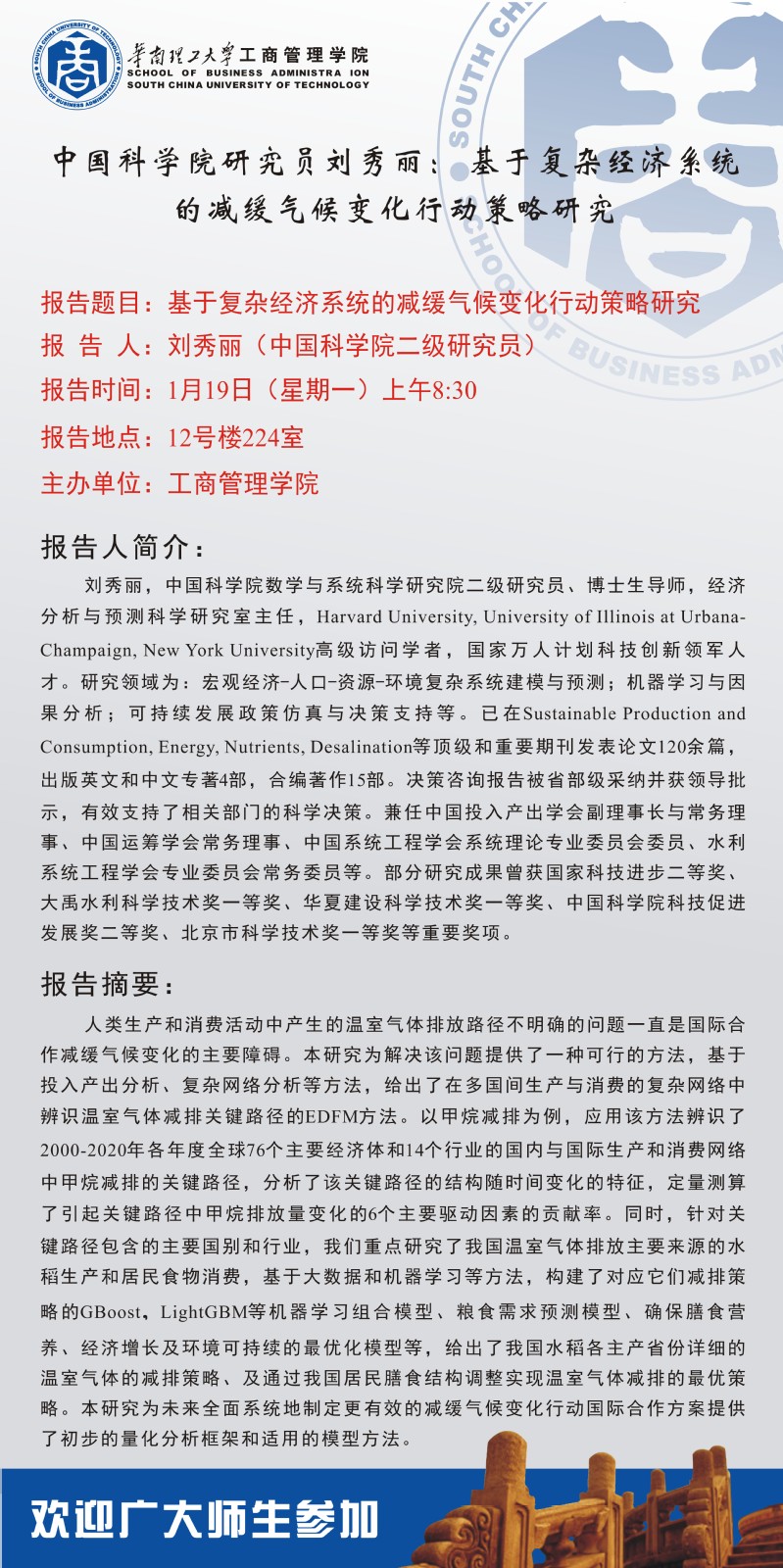 【学术交流报告】中国科公司研究员刘秀丽: 基于复杂经济系统的减缓气候变化行动策略研究