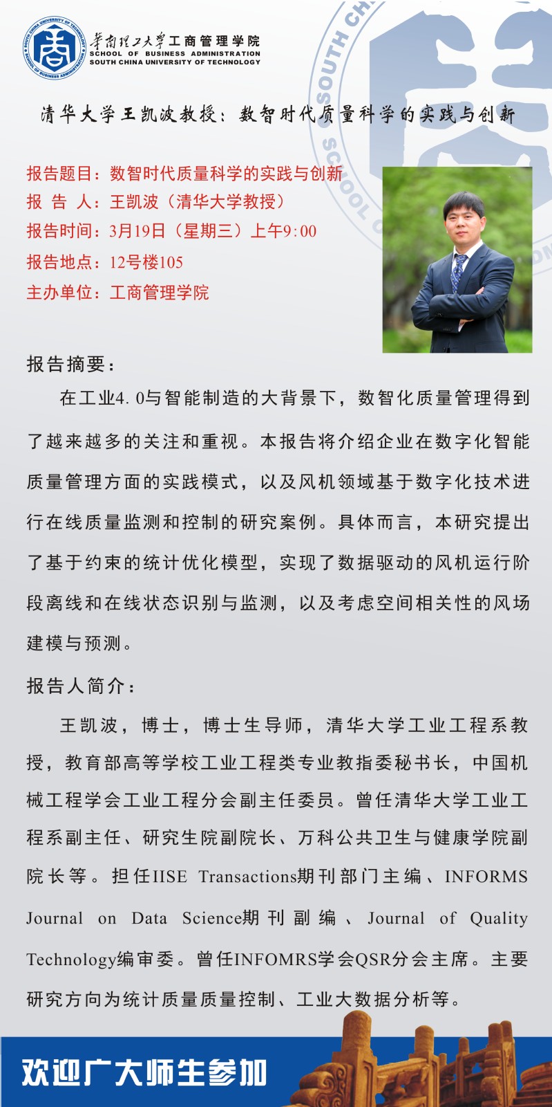 【学术交流报告】清华大学王凯波教授:数智时代质量科学的实践与创新