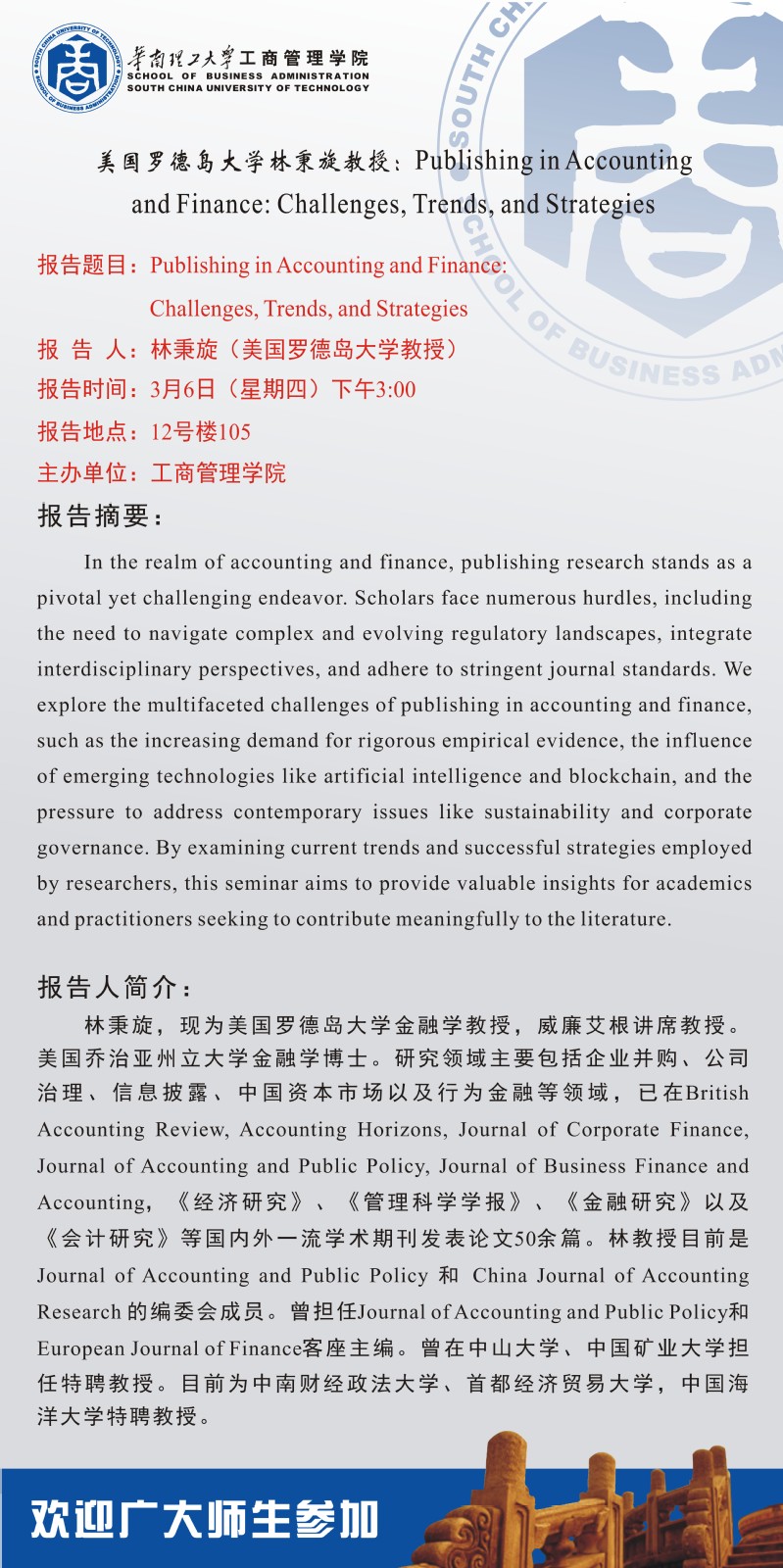 【学术交流报告】美国罗德岛大学林秉旋教授:Publishing in Accounting and Finance: Challenges, Trends, ...